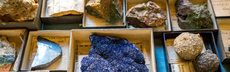 Regionale Kollektionen (Suiten) lagern im Erdgeschoss und im ersten Obergeschoss. Die systematischen Mineralien- sowie Gesteinssammlungen finden sich in der ersten Etage, die paläontologische Sammlung ist im Dachgeschoss untergebracht.