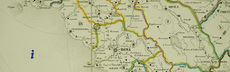 Sie blicken nun auf Latium, die Region um Rom. Der Kartenausschnitt entstammt der im Originalzustand ganz Italien zeigenden "Carta postale ed itineraria d'Italia" von Antonio Federico Botte aus dem Jahr 1844. Es ist die Blütezeit der Postkutschenära, die auf dieser Post- und Straßenkarte dokumentiert ist. Ein extrem differenziertes, umfangreiches Zeichensystem gibt allein die verschiedenen Beförderungsdienste der Post wieder. Noch dominiert klar die Postkutsche in der Personenbeförderung.