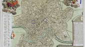 Schauen Sie sich in Ruhe um, schließlich haben Sie eine lange Reise hinter sich. Orientierung bietet dieser Vogelschaubild-Plan des Nürnberger Kartographen Johann Baptist Homann, der im ersten Drittel des 18. Jahrhunderts entstand. Für Fernreisende interessant: Auf dem Plan sind am Stadtrand die von Rom aus abgehenden antiken Fernstraßen Via Flaminia, Via Salaria, Via Tiburtina, Via Praenestina, Via Labicana und Via Appia eingezeichnet. In ihrem grundlegenden Verlauf sind sie größtenteils bis heute in Benutzung.